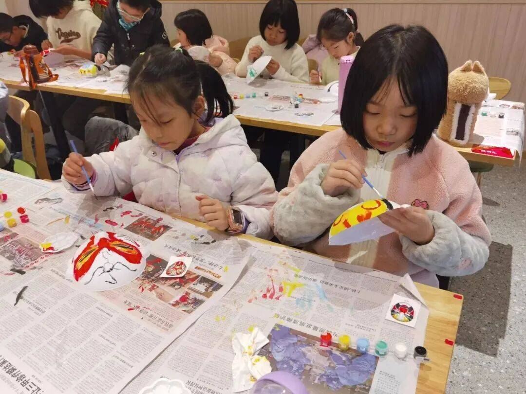 下午的活动则以传统文化为主题。在京剧脸谱绘制课堂上,老师细致讲解了京剧脸谱的色彩寓意、构图特点和绘制技巧,孩子们认真聆听、积极提问。随后,大家拿起画笔,在空白脸谱模板上勾勒线条、填充色彩,发挥想象力创作专属脸谱,一张张色彩鲜明、风格各异的脸谱在孩子们手中诞生,让大家感受到了京剧艺术的独特魅力。