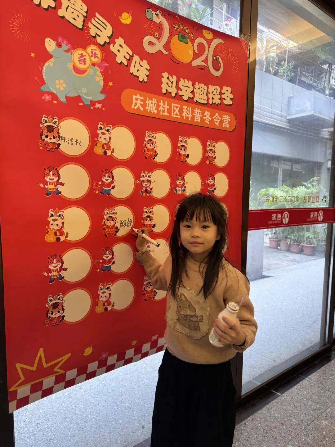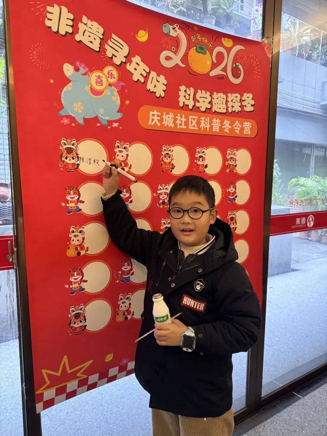 活动现场,色彩鲜艳的签名墙前热闹非凡,前来参与的孩子们手持马克笔,认真地在墙上签下自己的名字,一笔一划间满是对冬令营的期待与憧憬,稚嫩的字迹勾勒出满满的仪式感。青少年以签名签到的方式,开启了这场兼具知识性与趣味性的冬日探索之旅。