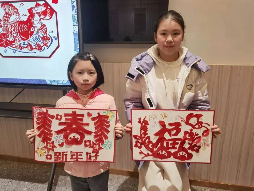 紧随其后的新年窗花制作环节让年味愈发浓厚,老师手把手教孩子们制作窗花,耐心指导每一个步骤。孩子们专注投入,在欢声笑语中完成了一幅幅精美的窗花作品。在亲手制作中,他们不仅掌握了传统剪纸技艺,还感受到了非遗文化的博大精深。