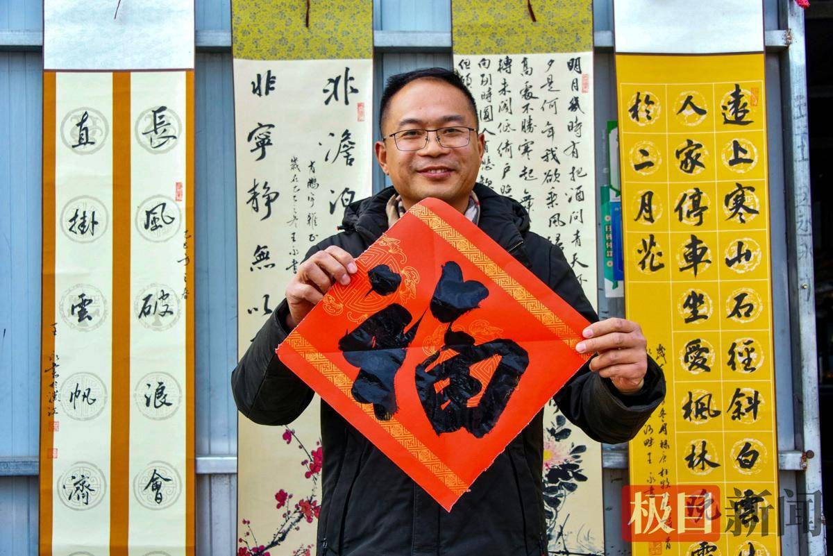 街坊邻居有需要,他总是欣然提笔,免费相赠。每年腊月,送春联的高峰期,他宁可放下店里的活,也要参加各类公益活动——进社区、进山村、进城区,把祝福送到千家万户。